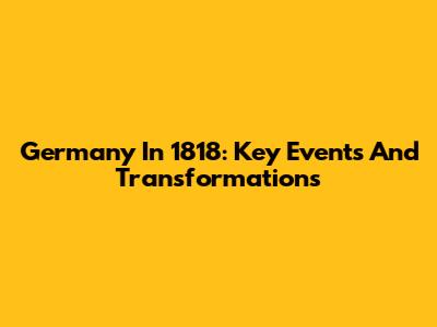 Germany In 1818: Key Events And Transformations