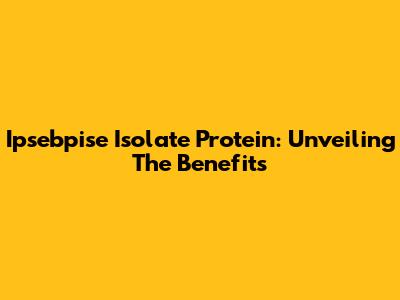 Ipsebpise Isolate Protein: Unveiling The Benefits