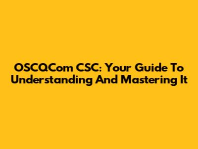 OSCQCom CSC: Your Guide To Understanding And Mastering It