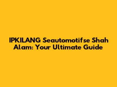 IPKILANG Seautomotifse Shah Alam: Your Ultimate Guide