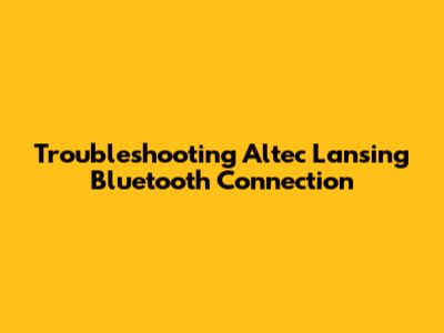 Troubleshooting Altec Lansing Bluetooth Connection
