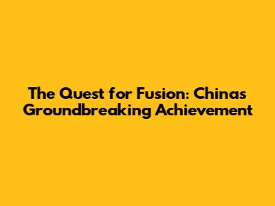 The Quest for Fusion: China's Groundbreaking Achievement