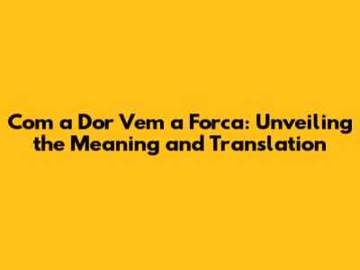 Hey guys! Ever heard a phrase that just hits you right in the feels? "Com a dor vem a forca" is one of those. It’s a Portuguese saying, and it packs a serious punch. In this article, we're going to dive deep into what this phrase means, how it translates into English, and why it resonates with so many people around the world. So, buckle up, and let's get started!