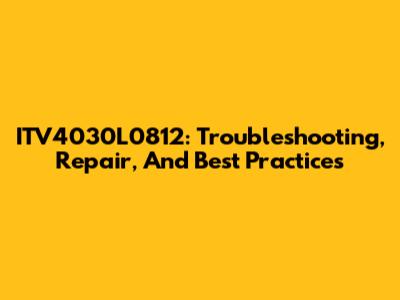 ITV4030L0812: Troubleshooting, Repair, And Best Practices