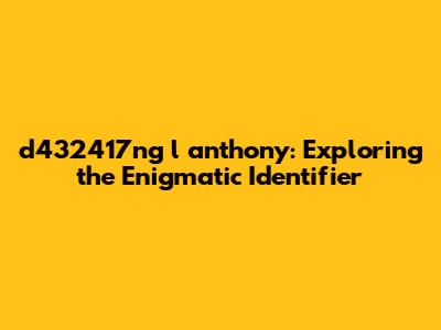Managing and protecting identifiers effectively is crucial for maintaining data integrity, security, and privacy. Here are some best practices to follow when working with identifiers like "d432417ng l anthony." First and foremost, use strong and unique identifiers. Avoid using sequential integers or easily guessable codes, as these can be vulnerable to attacks. Instead, use alphanumeric identifiers with a sufficient length and randomness to ensure uniqueness and security. Store identifiers securely. Never store identifiers in plain text, especially sensitive identifiers like passwords or encryption keys. Instead, use hashing or encryption to protect them from unauthorized access. Implement access controls to restrict access to identifiers to only those who need it. Use role-based access control (RBAC) to define different levels of access based on user roles. Regularly audit access to identifiers to ensure that only authorized users are accessing them. Monitor identifier usage for suspicious activity. Look for patterns of access that could indicate a security breach or data compromise. Implement logging and alerting to detect and respond to suspicious activity. Another crucial best practice is to protect identifiers from exposure. Avoid exposing identifiers unnecessarily in URLs, APIs, or other public interfaces. Instead, use alternative methods for identifying resources, such as opaque tokens or encrypted identifiers. Use data masking or anonymization techniques to protect identifiers in non-production environments. This can help prevent accidental disclosure of sensitive information. Comply with relevant data privacy regulations, such as GDPR or CCPA. These regulations may require you to implement specific measures to protect identifiers and other personal data. Regularly review and update your identifier management practices to ensure that they are aligned with the latest security threats and privacy regulations. Educate employees about the importance of identifier security and privacy. Provide training on how to handle identifiers responsibly and avoid common security mistakes. By following these best practices, you can significantly reduce the risk of data breaches, security incidents, and privacy violations. Remember that identifiers are valuable assets that need to be protected with the same level of care as any other sensitive data. In conclusion, while "d432417ng l anthony" may seem like a random string at first glance, understanding the context, types, and best practices surrounding identifiers allows us to unlock their meaning and manage them effectively in the digital world. Whether it's a user ID, a product code, or a transaction reference, identifiers play a crucial role in organizing, accessing, and protecting information in a wide range of systems and applications.