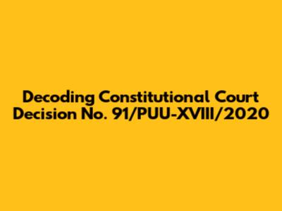 Hey folks! Let's dive into something super important: Constitutional Court Decision No. 91/PUU-XVIII/2020 (often shortened to just Decision 91/2020). This decision, handed down by the Indonesian Constitutional Court, has some serious implications. It affects a wide array of things, so it's worth taking the time to understand what's in it. This article is your friendly guide to unpacking the key aspects of this decision, explaining its legal context, and exploring its potential impact on society, and especially, the legal landscape. So, grab a coffee (or whatever you're into), and let's get started. We'll break down the decision's core components, discuss its significance, and see how it might influence things moving forward. This is a deep dive, but I'll make sure it's easy to follow. I will use simple words, and real-life examples to provide you with a good understanding of what Decision 91/2020 is all about. This is to make sure you fully understand the decision.