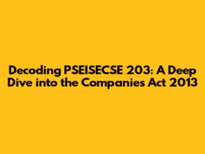 Hey guys! Ever heard of PSEISECSE 203? If you're scratching your head, no worries! We're diving deep into it today, specifically looking at how it relates to the Companies Act 2013. This is a crucial topic, especially if you're into business, finance, or even just curious about how companies operate in India. So, buckle up, because we're about to unpack this complex subject in a way that's easy to understand. We'll explore the key aspects of the Companies Act 2013, how PSEISECSE 203 fits into the picture, and why it all matters. Trust me, by the end of this, you'll have a much clearer picture of what's going on.