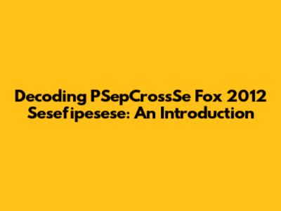 Decoding PSepCrossSe Fox 2012 Sesefipesese: An Introduction
