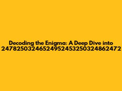 Hey guys! Let's crack the code on this one, shall we? You've stumbled upon a sequence: 24782503246524952453250324862472. Now, what in the world does that mean? Fear not, because we're about to dive deep and explore what this seemingly random string of numbers might represent. This isn't just about the numbers themselves, it's about the potential hidden meanings and the fascinating layers of interpretation that could be involved. Get ready to put on your detective hats, because we're about to embark on a journey of discovery. We'll approach this from several angles, so buckle up! Our main focus is understanding this specific number sequence, we will try to break it down, analyze its possible origins, and consider a range of potential interpretations. We will also discuss the importance of context and potential uses of such a sequence, and it may open doors to understanding concepts that may seem impossible to comprehend at first glance.