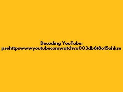 Hey guys! Ever stumbled upon a cryptic YouTube link and felt like you needed a decoder ring? Well, today we're diving deep into one of those mysterious strings: psehttpswwwyoutubecomwatchvu003db6t8o15ohkse. What does it all mean, and how can we make sense of it? Let's break it down, piece by piece, and turn that jumble of characters into a gateway to awesome video content. Buckle up, because we're about to unravel the secrets behind this YouTube URL!