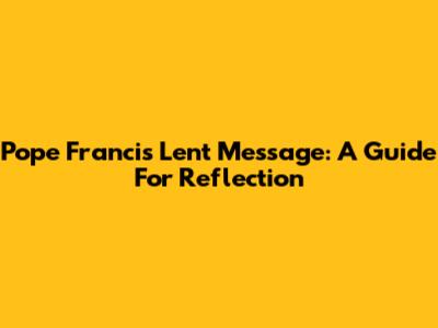 Pope Francis' Lent Message: A Guide For Reflection