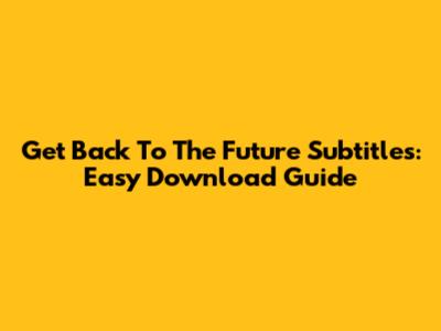Get Back To The Future Subtitles: Easy Download Guide
