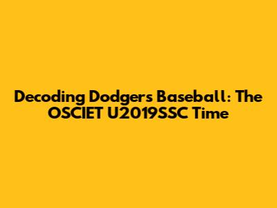 Unpacking the Dodgers' Timeline: OSCIET U2019SSC in Action