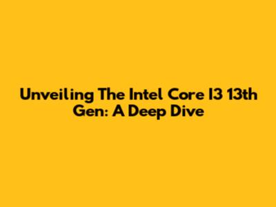 Unveiling The Intel Core I3 13th Gen: A Deep Dive