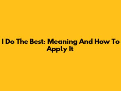 I Do The Best: Meaning And How To Apply It