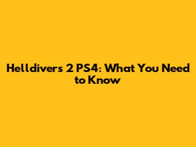 Will Helldivers 2 Ever Come to PS4?