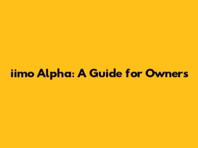 Maintaining Your iimo Alpha for Longevity
