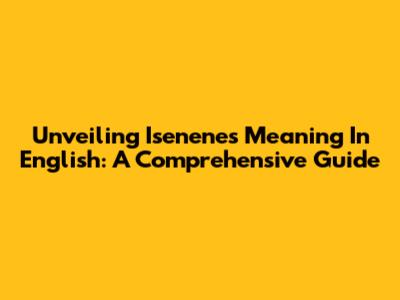 Unveiling Isenene's Meaning In English: A Comprehensive Guide