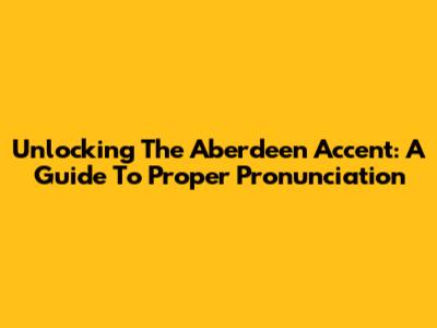 Unlocking The Aberdeen Accent: A Guide To Proper Pronunciation