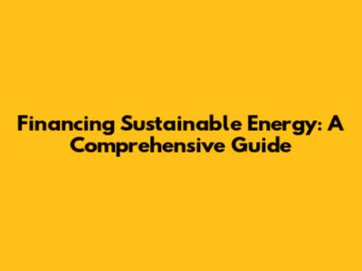 Financing Sustainable Energy: A Comprehensive Guide