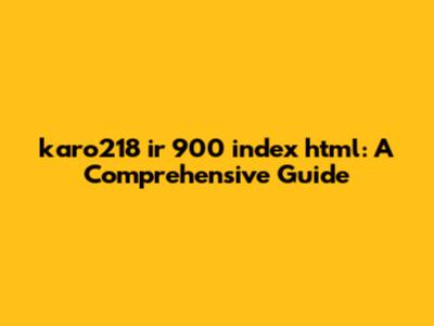 Let's start by dissecting the name karo218 ir 900 index html. This file name, like many others, likely follows a specific naming convention. Breaking it down can give us some clues about its purpose. The index.html part is the most straightforward; it typically indicates that this file is the main or starting page of a website or a section within a website. Think of it as the table of contents for a particular digital space. When you visit a website, the server often looks for a file named index.html (or similar, like index.php or default.html) to display as the homepage.