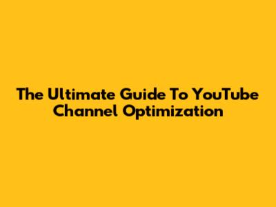 The Ultimate Guide To YouTube Channel Optimization