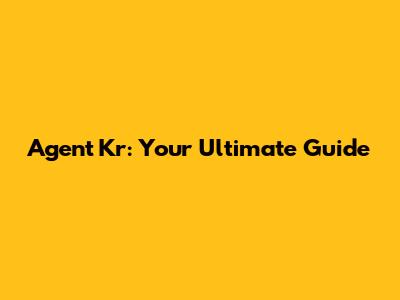 Agent Kr: Your Ultimate Guide