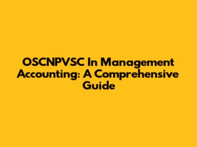 OSCNPVSC In Management Accounting: A Comprehensive Guide
