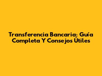Transferencia Bancaria: Guía Completa Y Consejos Útiles