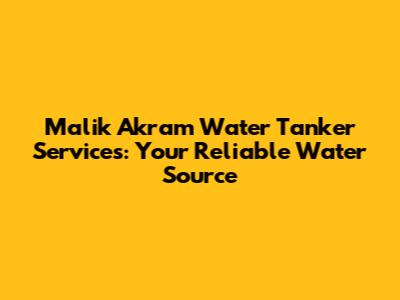 Malik Akram Water Tanker Services: Your Reliable Water Source
