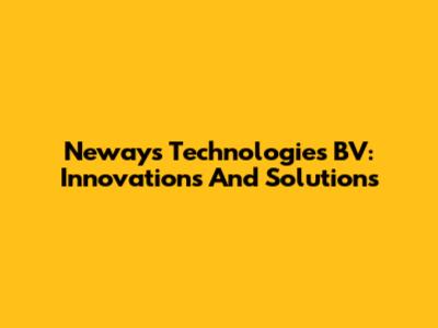 Neways Technologies BV: Innovations And Solutions