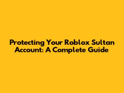 Protecting Your Roblox Sultan Account: A Complete Guide