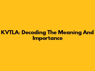 KVTLA: Decoding The Meaning And Importance