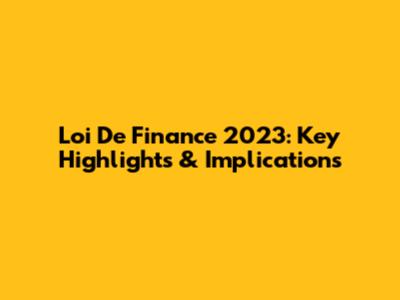 Loi De Finance 2023: Key Highlights & Implications
