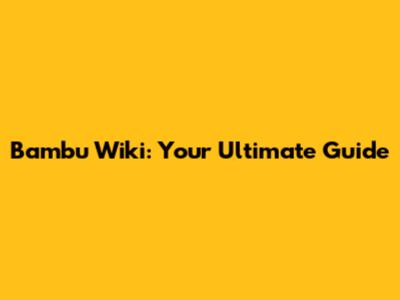 Bambu Wiki: Your Ultimate Guide