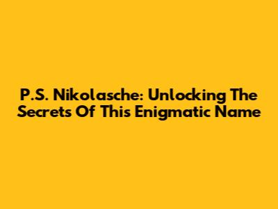 P.S. Nikolasche: Unlocking The Secrets Of This Enigmatic Name