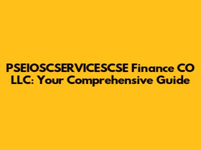 At its core, PSEIOSCSERVICESCSE Finance CO LLC is a financial entity. To really break this down, let's look at each component. The "PSEIOSCSERVICESCSE" part may refer to a specific operational division, a unique identifier, or perhaps even a legacy name that has evolved over time. Often, companies combine acronyms or initialisms to represent different parts of their business or history. It is essential to dig a little deeper to understand the full context.