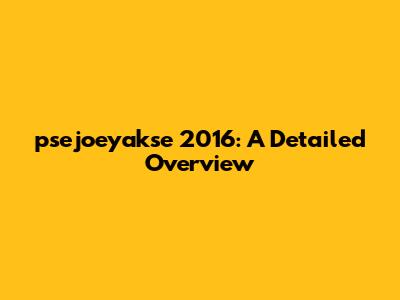 Hey guys! Today, we're diving deep into "psejoeyakse 2016". If you've stumbled upon this term and are scratching your head, don't worry, we're here to break it all down. Think of this as your ultimate guide, where we'll explore what it is, why it matters, and everything in between. Let's get started!