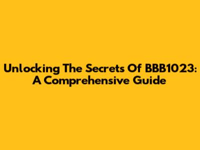 Unlocking The Secrets Of BBB1023: A Comprehensive Guide