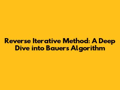 Hey guys! Ever stumbled upon a mathematical problem that seems impossible to crack? Well, there's a good chance the Reverse Iterative Method, particularly Bauer's algorithm, could be your secret weapon. In this article, we're going to unravel the mysteries behind this powerful numerical technique, making it super easy to understand and apply. Trust me; by the end of this, you'll be itching to try it out on your trickiest problems!