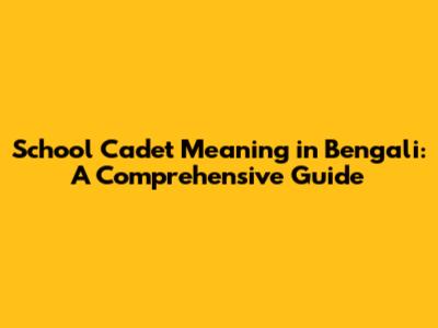 Hey guys! Ever wondered what "school cadet" means in Bengali? Or what being a school cadet actually involves? Well, you're in the right place! This article dives deep into the meaning of school cadet in Bengali, exploring its various aspects, benefits, and significance. We'll break it down in a way that's super easy to understand, so let's get started!