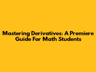 Mastering Derivatives: A Premiere Guide For Math Students