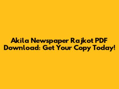 Akila Newspaper Rajkot PDF Download: Get Your Copy Today!