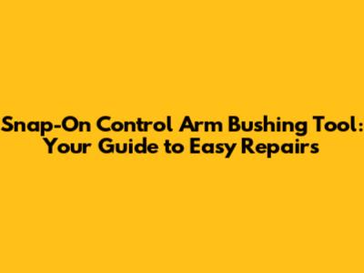 Hey there, gearheads and DIY enthusiasts! If you're anything like me, you love the feeling of tackling a car repair yourself, saving some serious cash, and getting your hands dirty in the process. One of the trickier jobs you might encounter is replacing those pesky control arm bushings. They might seem small, but these rubber or polyurethane donuts play a huge role in your car's handling, ride quality, and overall safety. When they wear out, it's time for a change, and that's where the Snap-On control arm bushing tool comes into play. This article is your ultimate guide. We'll dive deep into why this tool is a game-changer, how to use it, and why investing in quality tools, like those from Snap-On, can make all the difference in your garage adventures.