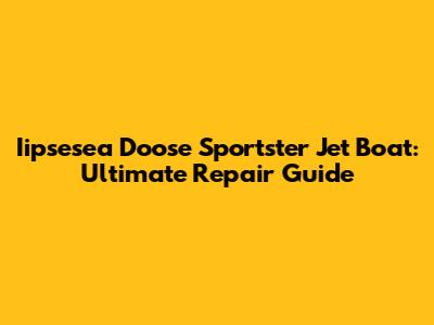Iipsesea Doose Sportster Jet Boat: Ultimate Repair Guide