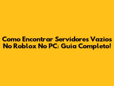Como Encontrar Servidores Vazios No Roblox No PC: Guia Completo!