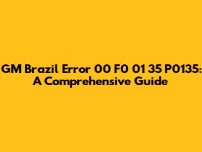 Hey guys! Ever stared at your dashboard, seen a weird error code, and felt that sinking feeling? Today, we're diving deep into one that might have you scratching your head: GM Brazil error 00 F0 01 35 P0135. This error is specific to some GM vehicles, particularly those in Brazil, but the P0135 part? That's a bit more universal. We're breaking it all down so you can understand what's going on, what it means for your car, and how to tackle it like a pro. So, buckle up, and let's get started!