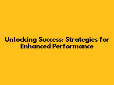 Strategies for Boosting Your Performance