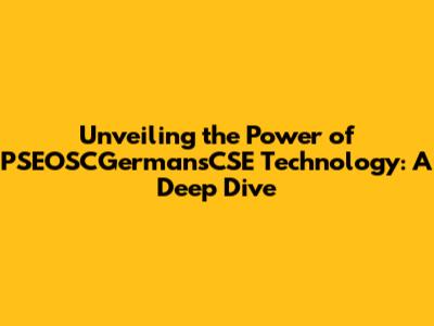Future Trends and Developments in PSEOSCGermansCSE Technology