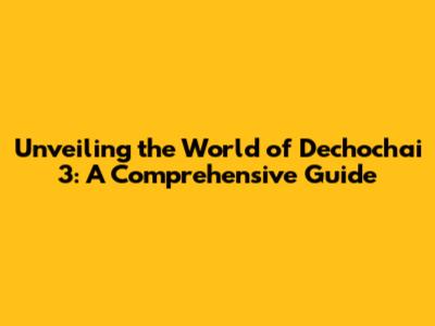 Understanding Dechochai 3: What It Is and Why It Matters